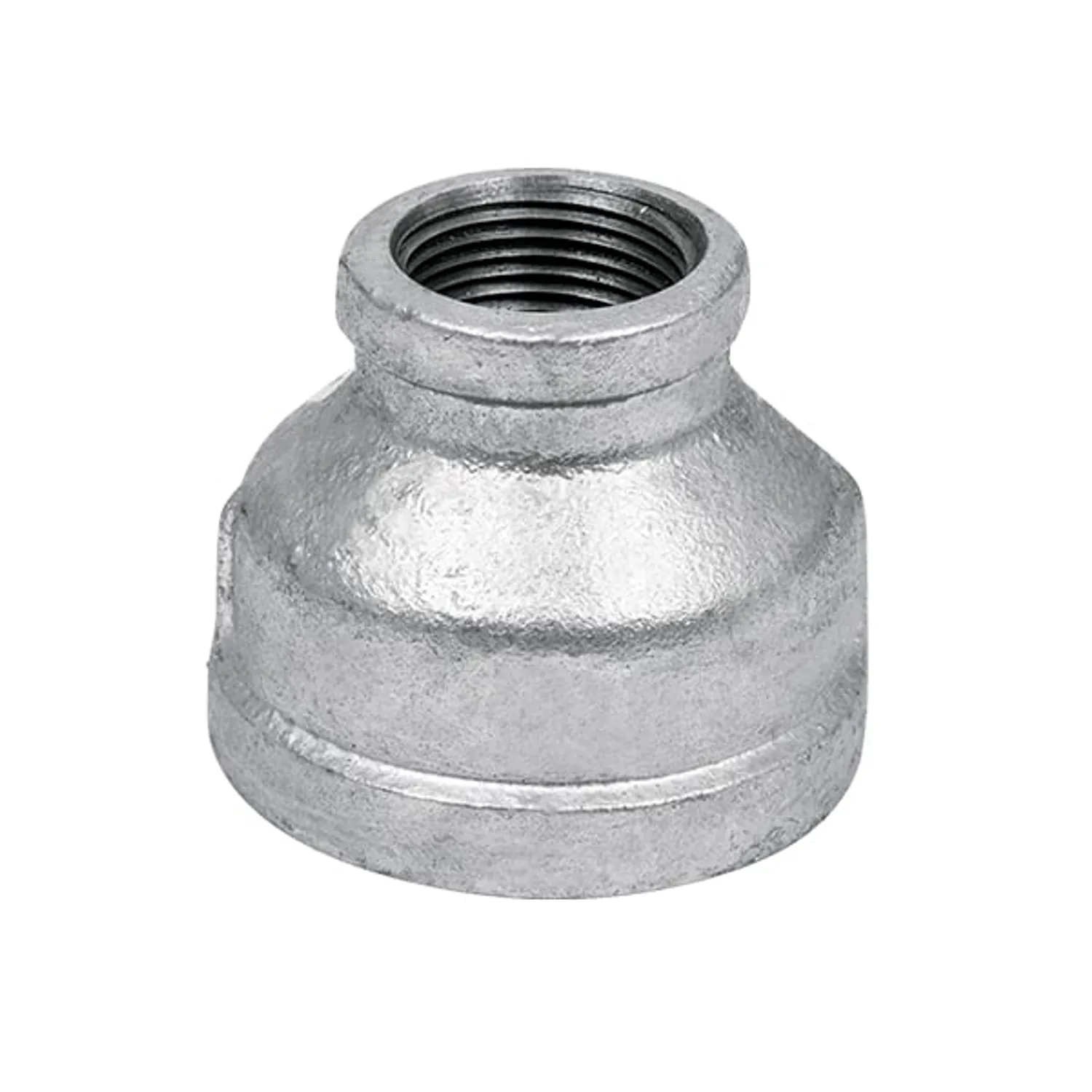 La copa de reducción galvanizada (también conocida como campana o buje de reducción) es un accesorio de hierro maleable diseñado para conectar dos tuberías de diferentes diámetros en una línea recta. Al ser galvanizada, cuenta con una protección de zinc que la hace ideal para entornos húmedos o industriales.