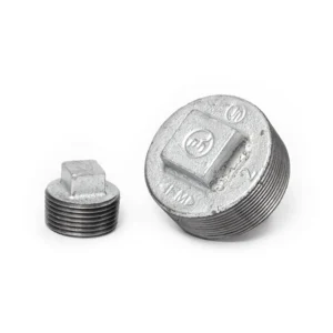 El tapón galvanizado es un accesorio de cierre diseñado para sellar de forma permanente o temporal el extremo de una tubería o una salida de conexión con rosca. Al igual que el codo, está fabricado en hierro maleable y recubierto con una capa de zinc para evitar la oxidación.