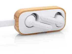 Audífonos Bambú TE0650 Audífonos inalámbricos TWS. Bluetooth versión 5.0, con cargador integrado en caja de Bambú y cierre imantado. Batería 3.7V/240mA.