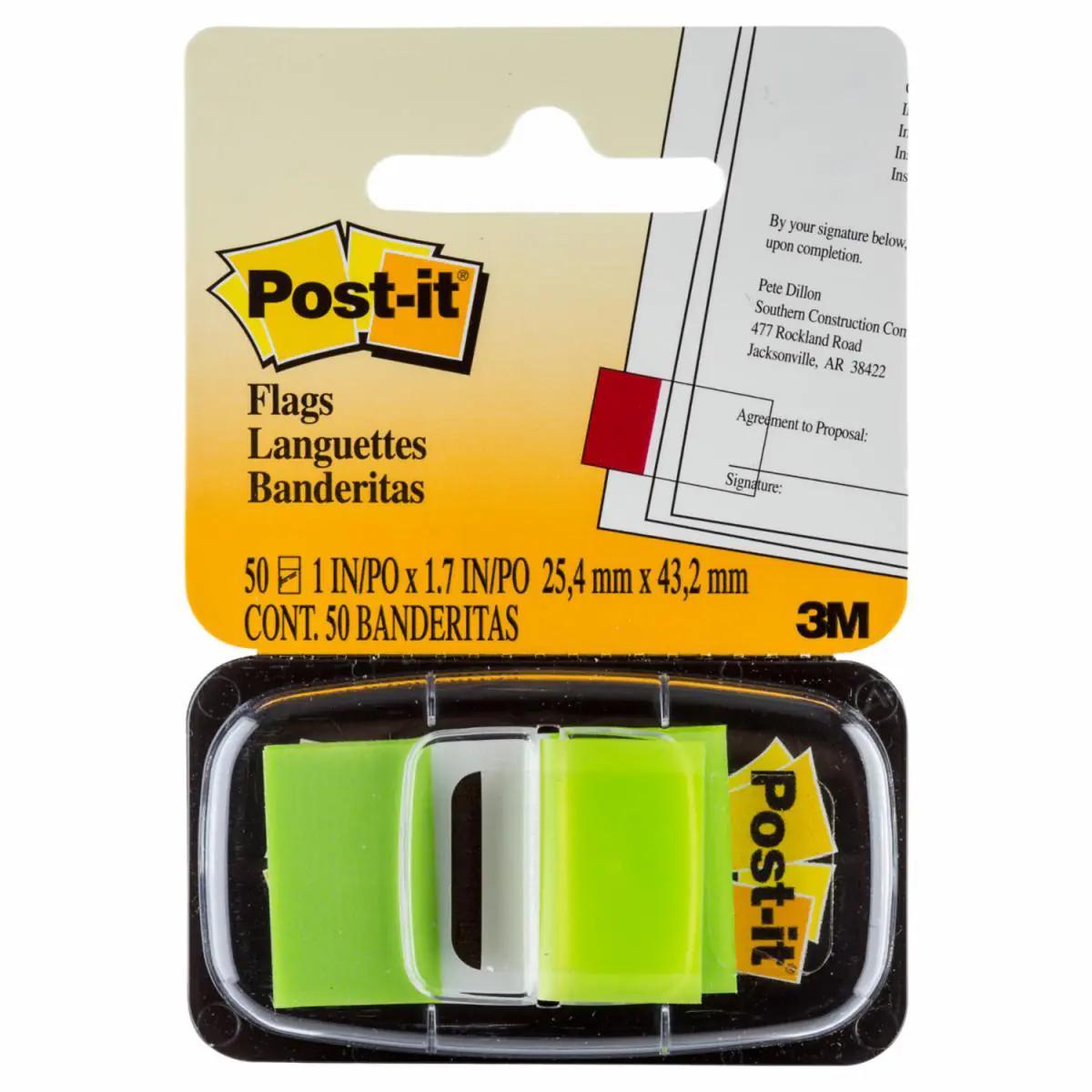 Banderitas Adhesivas Post-it®, Señaladores de Página, Verde Neón, 4,3 cm x 2,5 cm, 50 Unidades