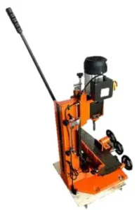 A diferencia de un taladro convencional, la barrenadora permite mover la pieza de madera en tres ejes ($X$, $Y$, $Z$) con total control mediante palancas manuales. Esto garantiza que cada perforación sea perfectamente perpendicular y que las cajas (ranuras) para los ensambles tengan una profundidad y longitud milimétrica.