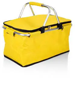 Basket Luxe VI0115 Canasta con agarraderas en aluminio, revestimiento en aluminio, especial para disfrutar del campo en un agradable picnic con la familia o amigos en días de sol. Diseño práctico de utilizar. Material: Poliéster 600D + PVC + Aluminio. Medidas: 44 cm x 23,5 cm x 24 cm. Colores: azul, rojo, amarillo y verde