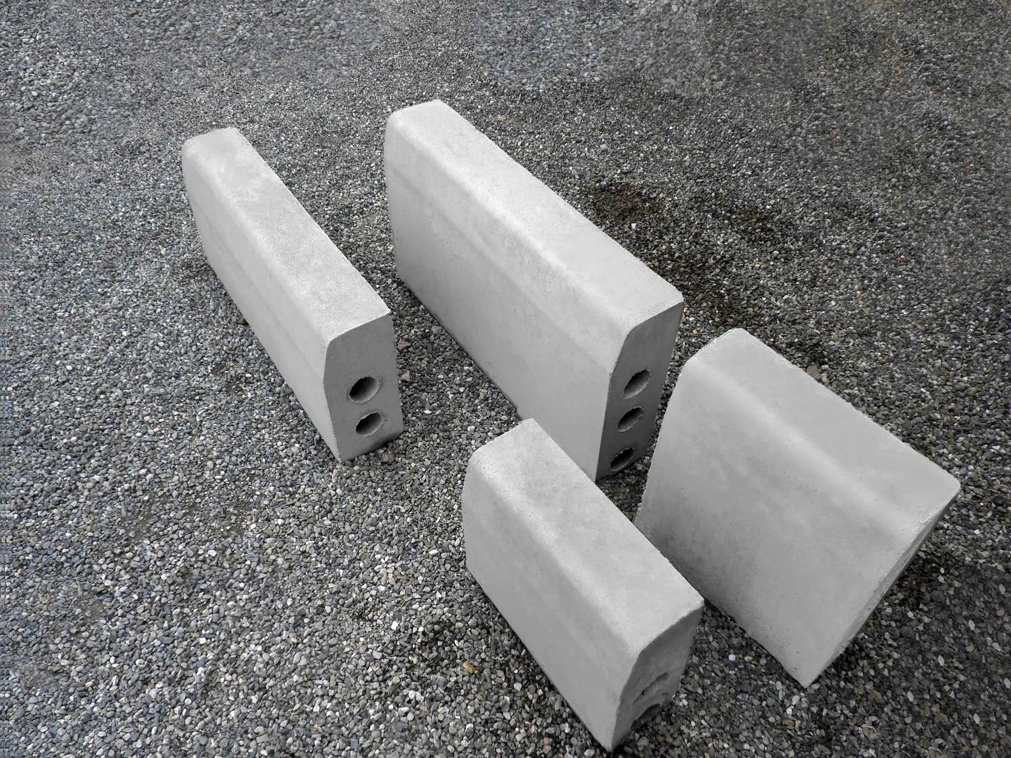 Unidades, derechas e izquierdas, que sirven para hacer la transición de la altura del bordillo (borde del andén) , en 50 mm por unidad, y que se colocan a lado y lado de la boca de las rampas para discapacitados motrices, con el fin de conformar los rebajes. Su altura está dada por la medida del extremo mas alto.