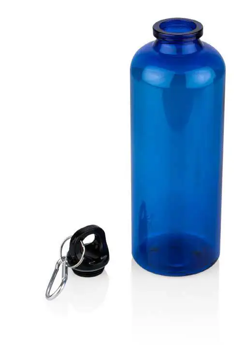 Botella Miles Plástica BE0398 Botella de Rpet con gancho carabinero, tapa rosca. Libre de BPA u otras sustancias nocivas. No retiene ni transmite sabores. Caucho en la tapa para evitar derrames.