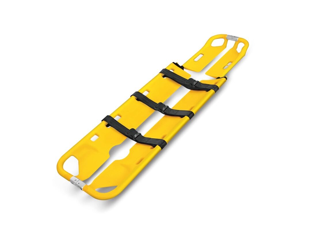 La camilla tipo Cuchara de Polietileno puede abrirse en dos mitades izquierda y derecha, facilitando la colocación y extracción del paciente. Con dimensiones de aproximadamente 162 cm de largo, 44.5 cm de ancho y 7 cm de alto, brinda un amplio espacio y estabilidad durante el transporte.
