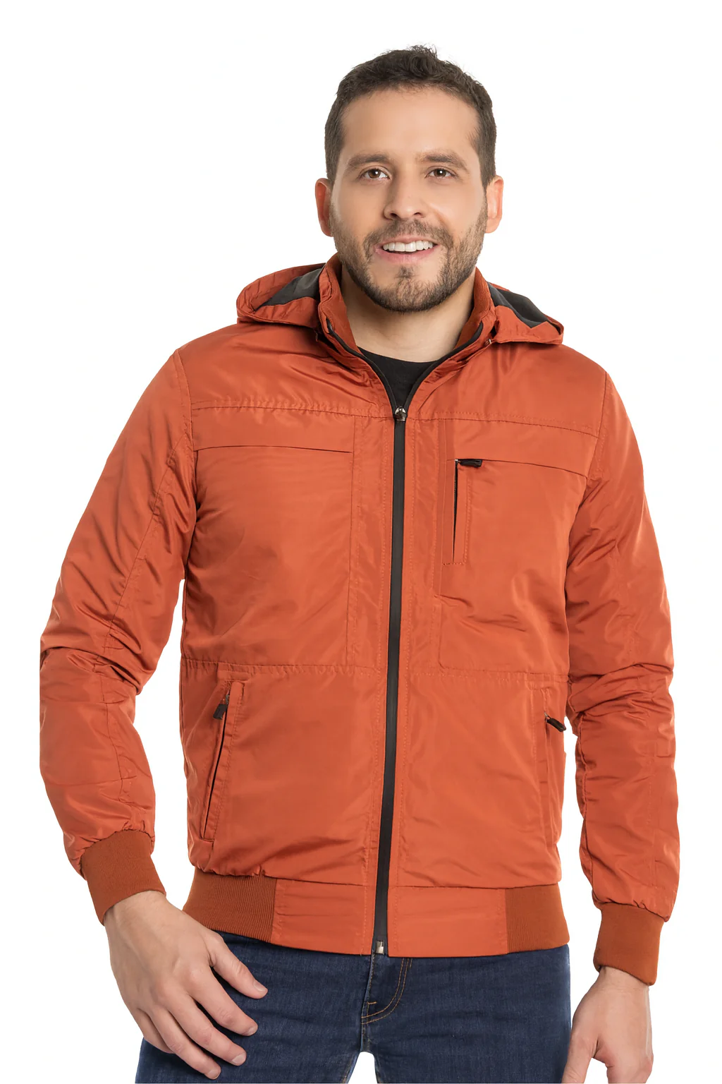 Su cremallera impermeable garantiza una barrera efectiva contra la lluvia, mientras que la capota desmontable permite ajustar la prenda según el clima o el estilo del día. Incluye un bolsillo interno con cierre de seguridad, pensado para proteger tus pertenencias sin perder comodidad ni estética.