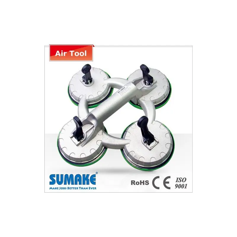 Chupa para vidrio cuádruple de alta resistencia (120 kg), con activación por palanca y diseño ergonómico para manipulación segura de paneles.