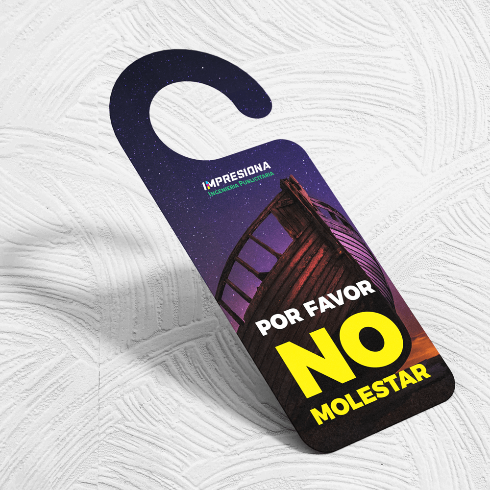 Selecciona el formato de colgador para puerta y combínalo con alguna de las ocho medidas disponibles. Además dispones de un formato personalizado. Tamaño mínimo 7×20 cm y máximo 10×30 cm.