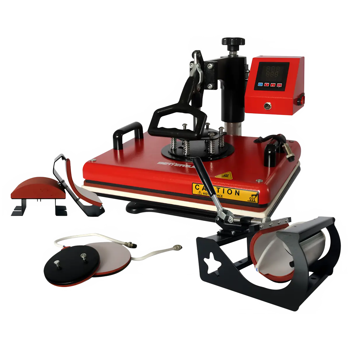La máquina sublimadora Combo 5 en 1 es la herramienta de entrada más popular en el mundo de la personalización, diseñada específicamente para emprendedores que buscan diversificar su oferta sin invertir en múltiples máquinas individuales. Su concepto se basa en una unidad de control central y una estructura base a la que se le pueden adaptar diferentes accesorios térmicos.