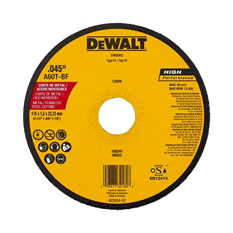 Discos para Acero Inoxidable: Libres de hierro, azufre y cloro para evitar la contaminación y corrosión del material durante el corte.
