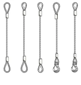 Son las más comunes en la industria debido a su equilibrio entre costo, peso y resistencia. Se fabrican utilizando el cable de acero que vimos anteriormente, generalmente con terminaciones de «ojos» prensados o tejidos.