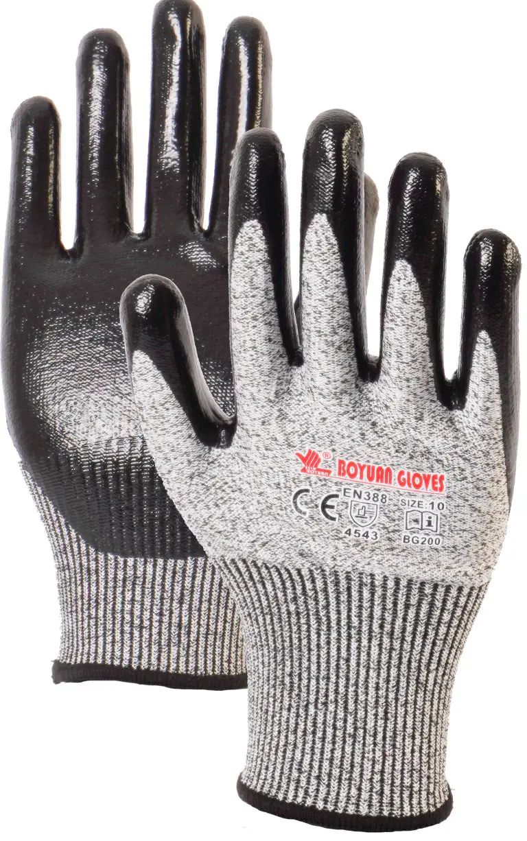 Guante Cut (NI) Fibra HPPE Polietileno de Alto Peso Molecular. Recubrimiento en nitrilo que permite mejor deslizamiento del guante sobre equipos y materiales.