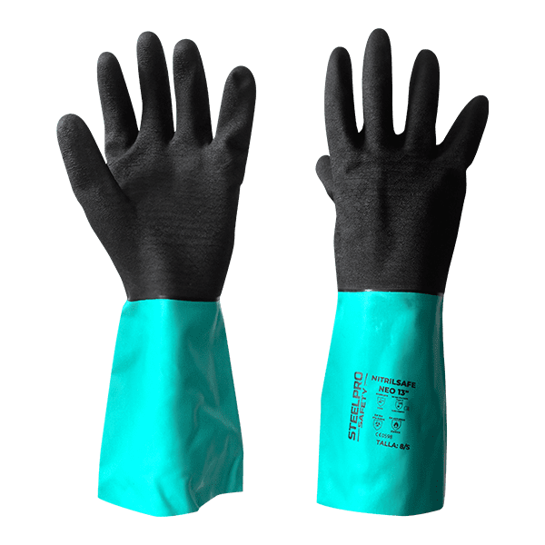 Guantes NEO en nitrilo con recubrimiento en palma de neopreno corrugado ideal para trabajos con Químicos.