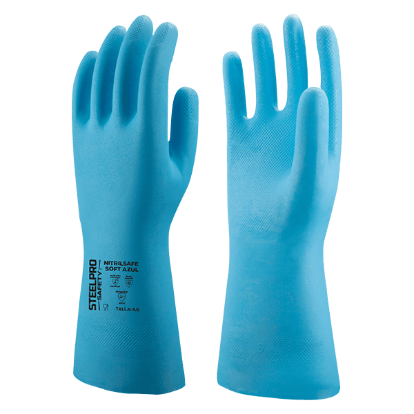 SOFT AZUL en nitrilo libre de proteínas solubles sin FLOCK, ideal para áreas de trabajo como cocinas industriales, cosmética y alimentos.