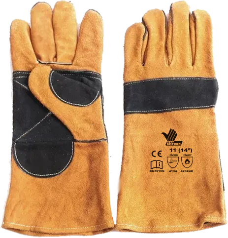 Guante de soldador en carnaza de res de alta calidad, con costuras en hilo Kevlar® y forro interior tipo jersey. Ofrece excelente resistencia al calor, abrasión y chispas. Largo de 16″, ideal para trabajos de soldadura, fundición y construcción. Cumple normas EN 388 y EN 407.