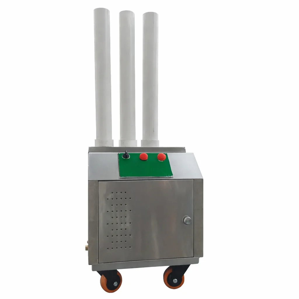 El humidificador industrial adopta el principio de oscilación ultrasónica de alta frecuencia para atomizar agua en partículas ultra-finas de uno a cinco micrómetros máximo, y difunde la neblina de agua en el aire a través de un moto-ventilador, logrando así el propósito de humedecer uniformemente el aire. Si al agua se le agrega un químico desinfectante estaremos utilizando uno de los mejores sistemas de desinfección.