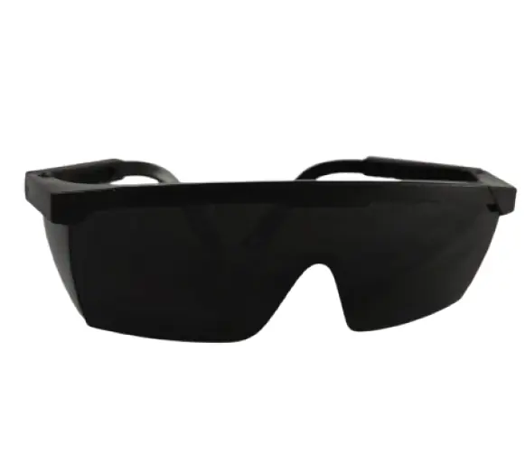 Su estructura robusta combina un lente en policarbonato oscuro con un marco ergonómico en PVC, brindando comodidad, resistencia al impacto y protección lateral.