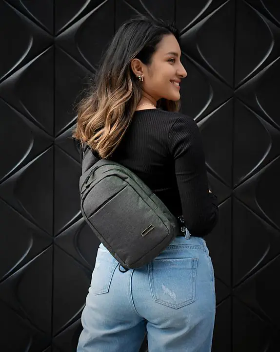 Manos Libres Katherine BO0411 Manos libres con cargadera ajustable, bolsillo frontal, medio y principal con cremallera, placa metálica para marca en láser, compartimentos internos para organizar mejor. Material: PVC Snow Poliéster 600D. Medidas: 28,5 cm x 30 cm x 6 cm.