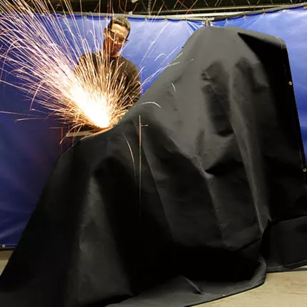 Úselas como escudos térmicos o cortinas. Las mantas de soldadura bloquean todos los peligros de la soldadura por arco, como chispas, salpicaduras e incluso disolventes. Se pueden usar en tratamientos térmicos ligeros en una sola capa o, idealmente, en varias capas.
