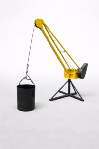 «Equipo versátil con tripode y guaya de 30 metros para optimizar tiempos de construcción con balde de 65 litros o canasta.»