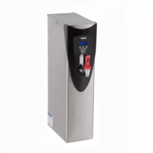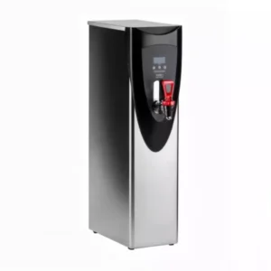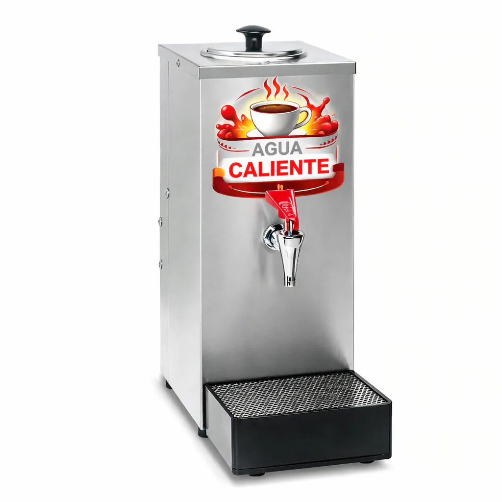 Este dispensador cuenta con un depósito de acero inoxidable de alta capacidad que puede contener hasta 19 litros (5 galones de agua caliente); utiliza un sistema de calentamiento por caldera para calentar el agua de manera eficiente y mantenerla a la temperatura deseada.
