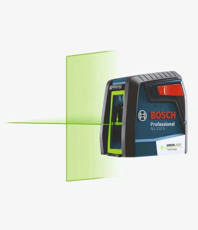 Color de linea laser VERDE, 2 lineas • Rango de Trabajo: 0-12m • Precisión: +/- 0,3mm/m