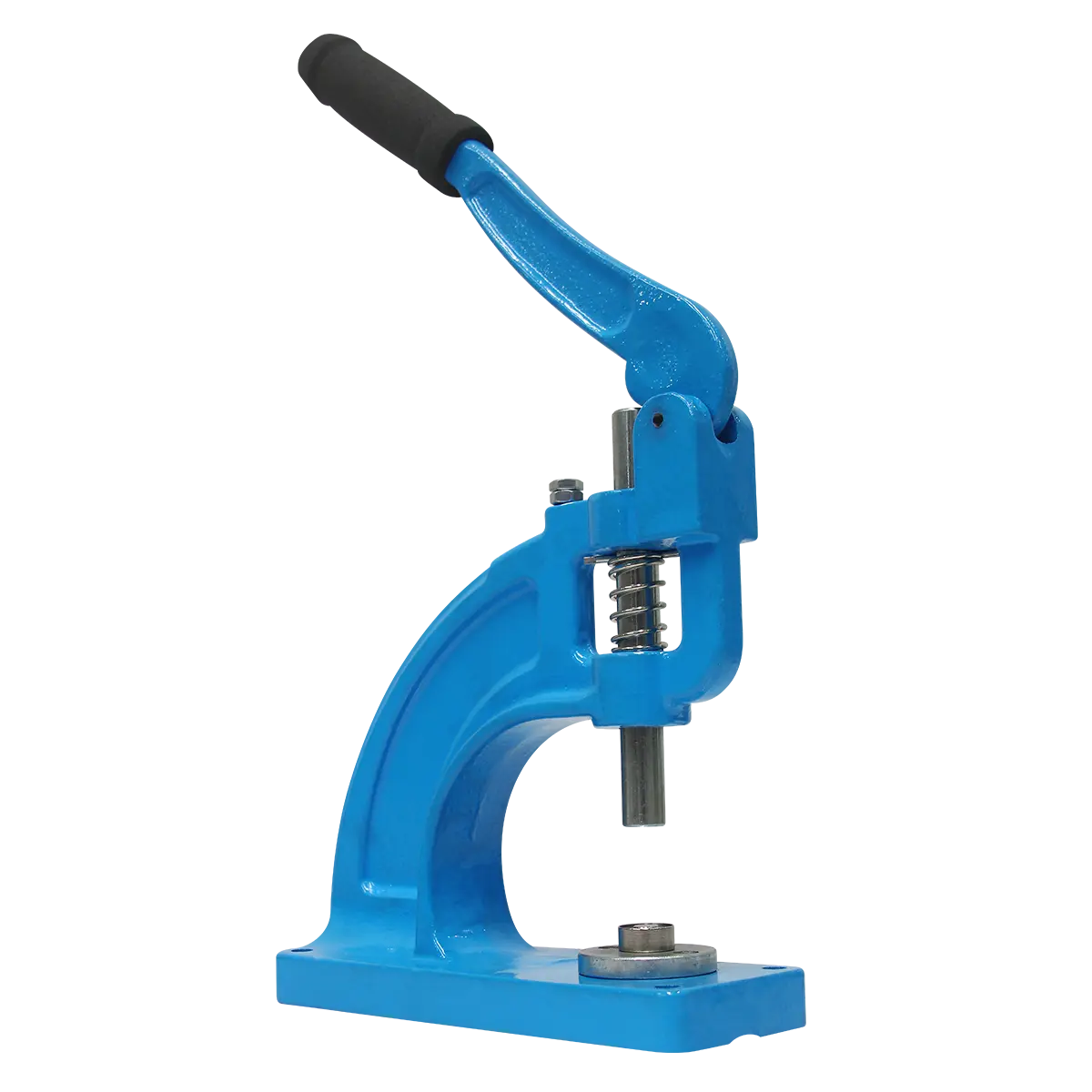 Mecanismo: Funcionan mediante una palanca que el operario baja para ejercer presión. Requieren que el usuario coloque manualmente tanto el ojillo como la arandela en los dados (moldes) antes de cada aplicación.