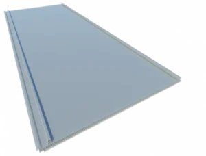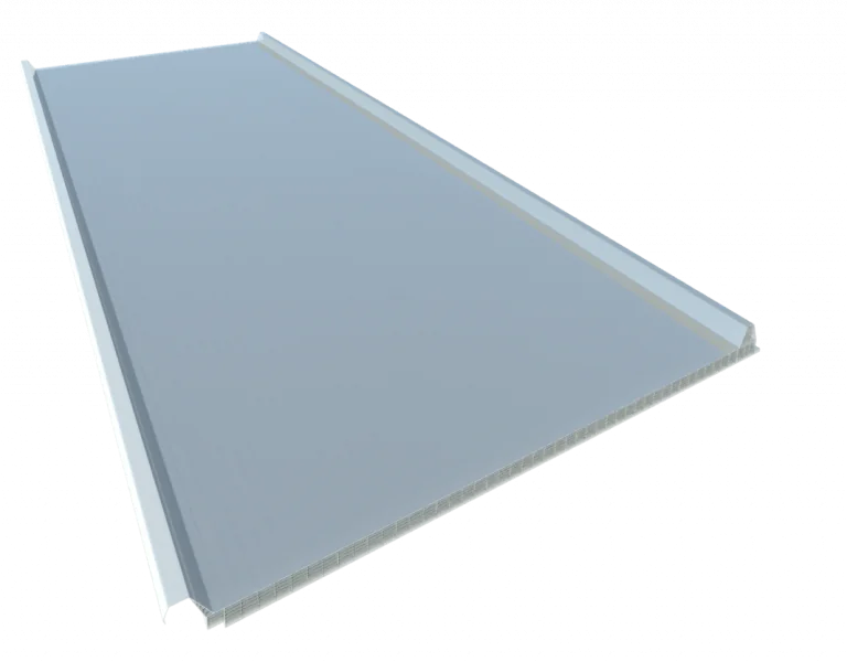 Es un panel de policarbonato alveolar creado para poder ser instalado en fachada. Se puede montar machihembrado a nuestro panel de fachada con fijación oculta o bien como lucernario en continuo. Tiene 35 mm de espesor y está formado por un total de 9 paredes de células triangulares (cámaras de aire), dotando al producto de un buen aislamiento térmico y de resistencia a los esfuerzos.