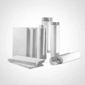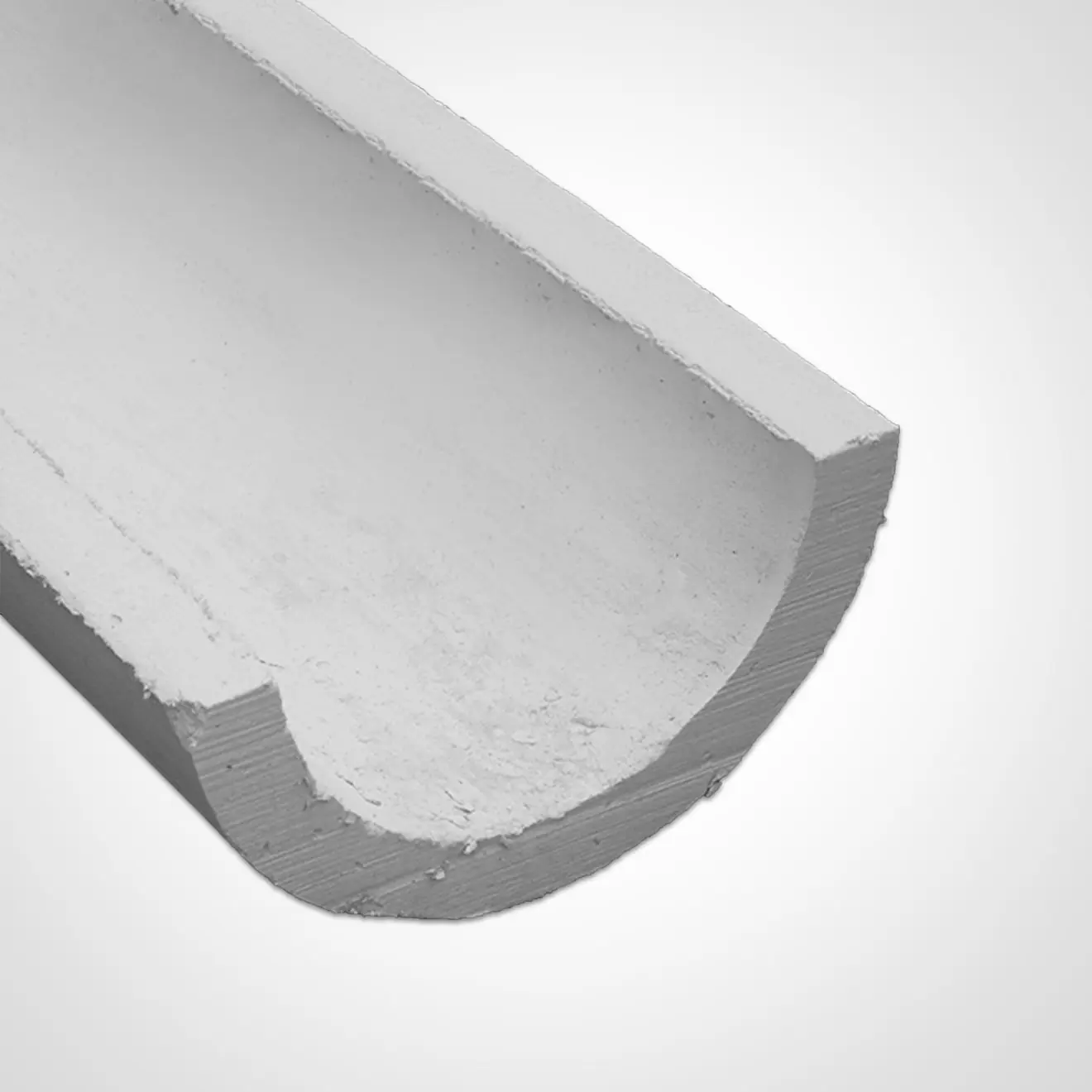 Material termoaislante preformado en forma de Cañuelas (medias cañas) para aislamiento de tuberías y Placas para superficies placas o de gran curvatura (radio de ± 2,0 m), con temperaturas de operación cíclica o continua de hasta 650 oC (1.202 oF). Producto libre de asbestos.
