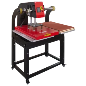 La principal ventaja de este equipo es el sistema de doble estación. Mientras una de las bandejas de 40×60 cm está bajo la prensa en el ciclo de calor, el operario tiene la otra bandeja libre para centrar el diseño y preparar la siguiente prenda. Esto permite una producción ininterrumpida, duplicando la capacidad de salida frente a una plancha de una sola estación.