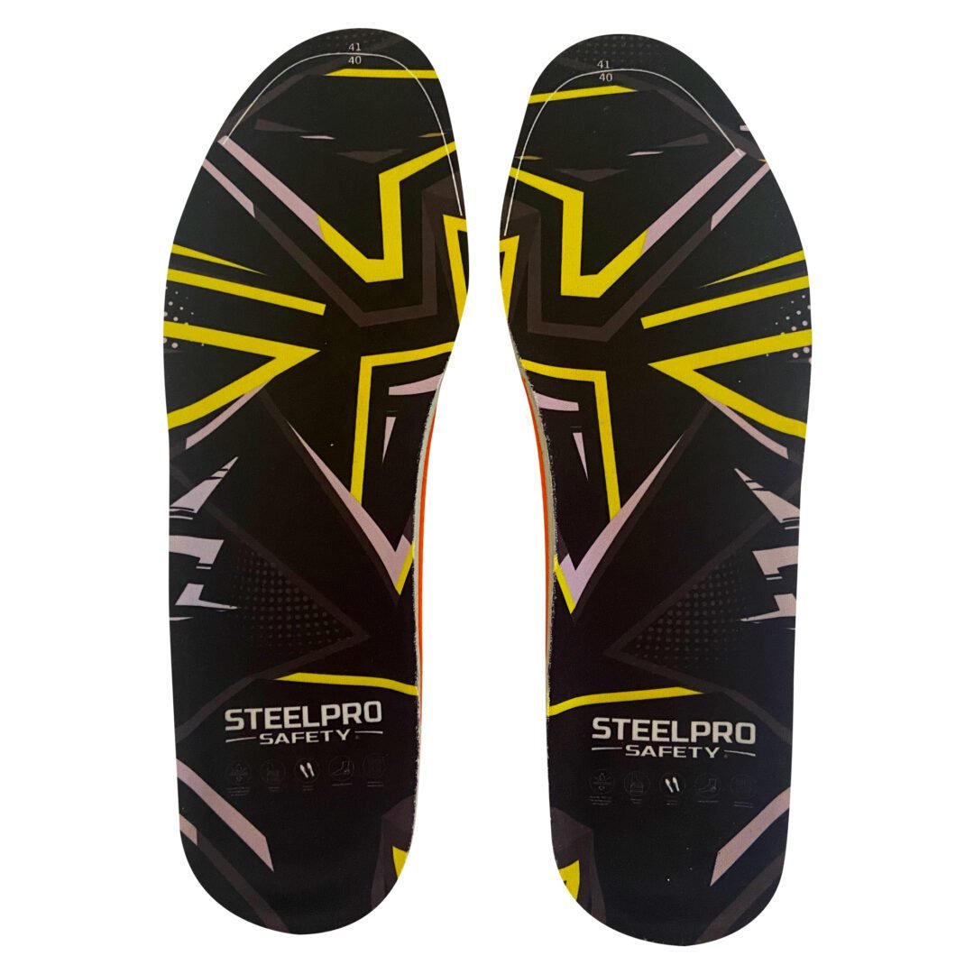 Steelpro cuenta con plantillas para su línea de calzado de seguridad, que amortiguan el impacto transformando el trabajo en un descanzo para tus pies.