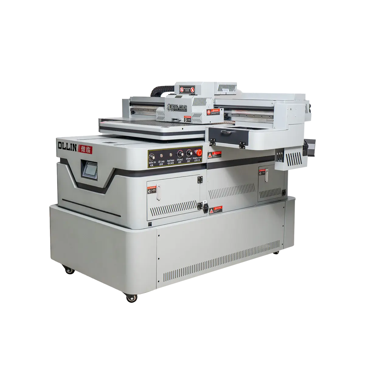 Cama impresora, equipada con importados lámpara Ultravioleta del LED, ahorro de energía, protección del medio ambiente y una vida más larga tinta Individual de purga y limpieza función de reducir el consumo de costo mucho la velocidad de impresión es hasta 24m2/h.
