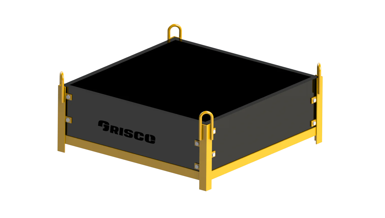 Canasta cuadrada para izaje de bultos de cemento, arena y demás material de construcción dentro de losas. Se usa principalmente para trabajo liviano, mampostería y acabados finales.