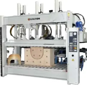Una prensa de tablero tipo carrusel (también conocida como prensa rotativa) es una de las soluciones más eficientes para la fabricación de tableros de madera sólida, ya que permite un flujo de trabajo continuo y maximiza el uso del espacio en el taller.