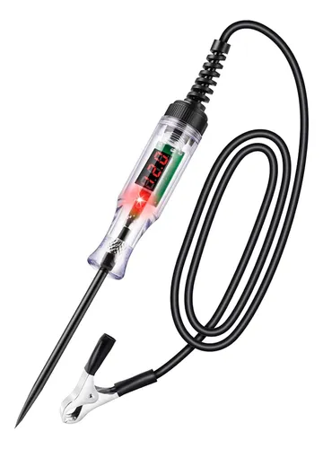 Probador eléctrico con pantalla digital para sistemas de 6V a 24V DC, ideal para diagnósticos en fusibles, interruptores y cortocircuitos.