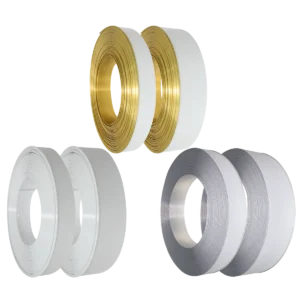 Se trata de una cinta de aluminio pre-pintado o anodizado que incluye una pleca (un borde o pestaña de caucho o plástico flexible) unida mecánicamente a uno de sus cantos. Esta pestaña permite fijar de manera rápida y segura el acrílico frontal de una letra o figura, actuando como sello y soporte estructural.