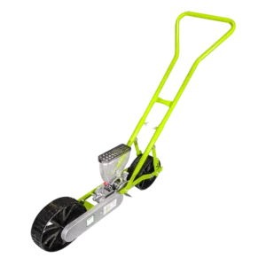 La sembradora de hortalizas manual Haudin V08-1: una sembradora de semillas de hortalizas. Se encarga del arado en hileras, la colocación de semillas y el cubrimiento, todo ello con empuje manual.