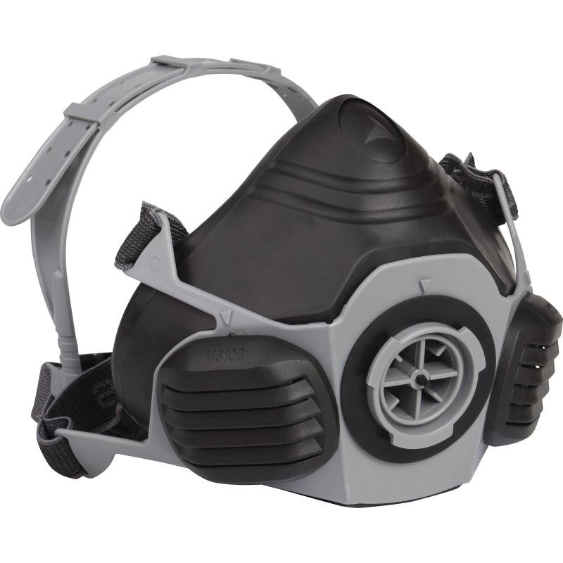 Semimáscara confort, triple material : máscara de termoplástico elastómero (TPE) – soporte para anclaje de filtros en polietileno alta densidad (HDPE) – cárter de protección de la válvula en polipropileno (PP). Correas elásticas. Para uso con 1 filtro : M6000 P3, M6000 PREP3 o M6000 A1, vendidos por separado. Embalaje en caja de cartón.
