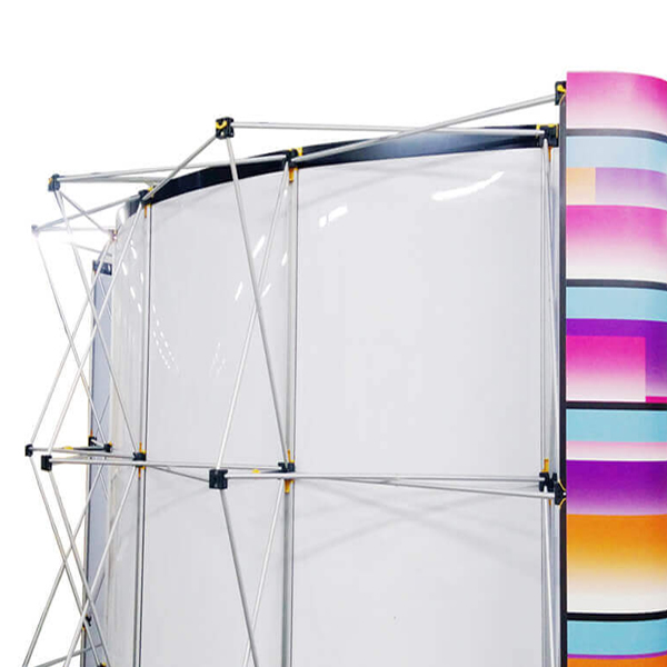 El Backing Skyline es un stand totalmente desarmable, consiste en un marco retráctil resistente en aluminio curvo.