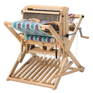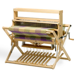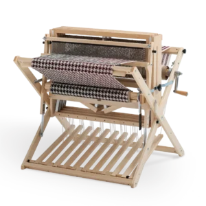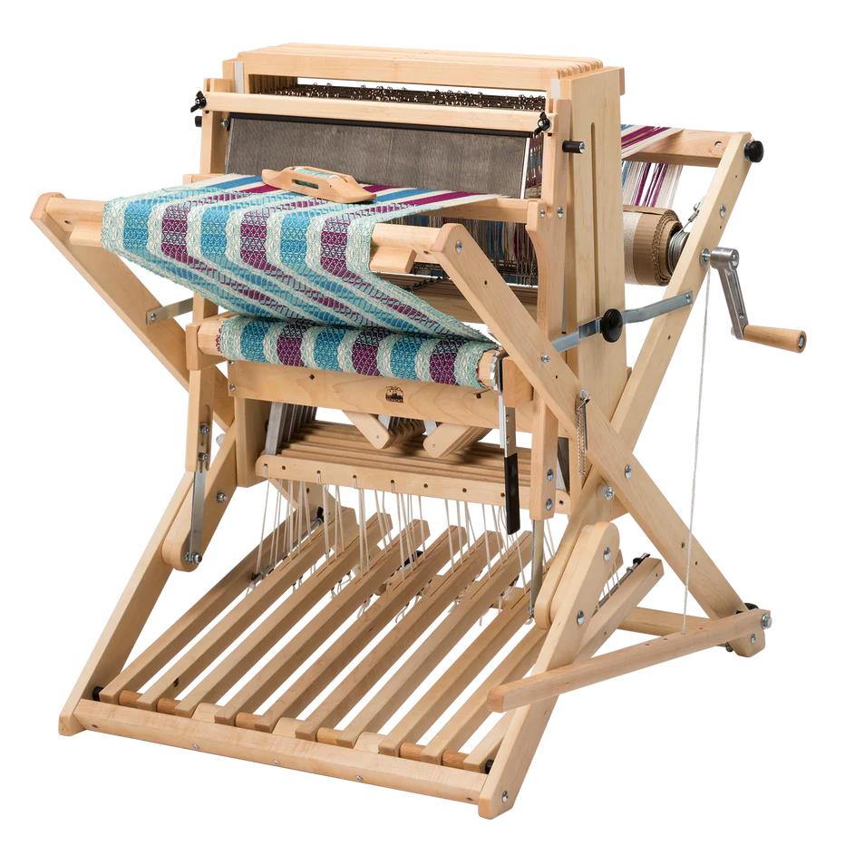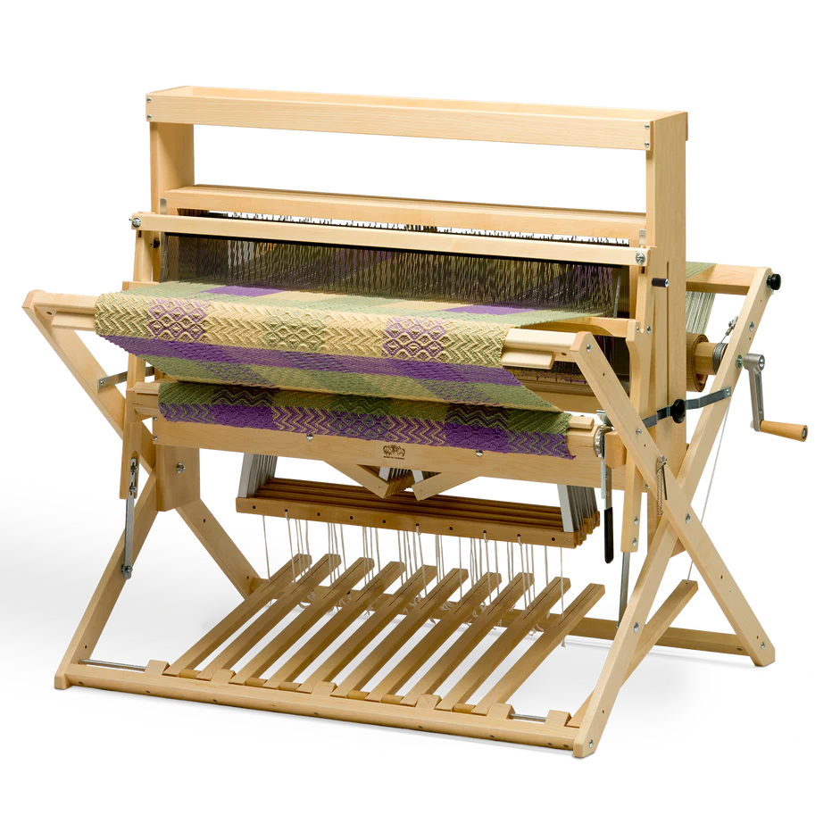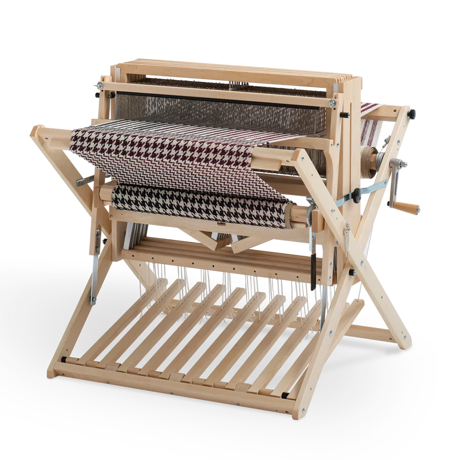 El tejido se combina con un diseño. Con anchos de tejido amplios (91 cm o 114 cm) y características prácticas como una bandeja para herramientas y una viga trasera plegable, el telar de piso estándar está diseñado para impulsar la creatividad.