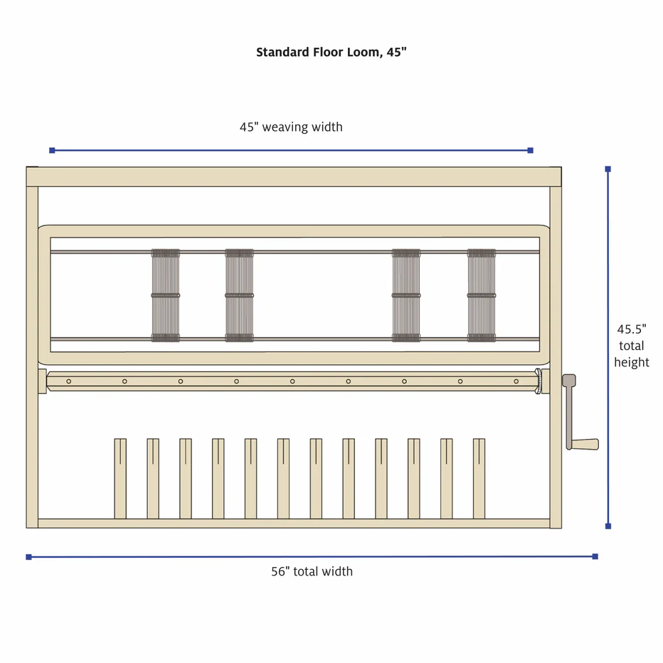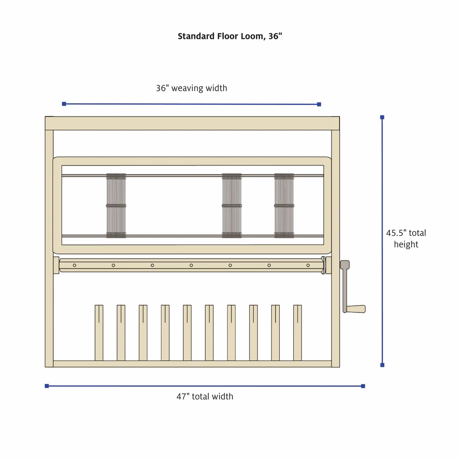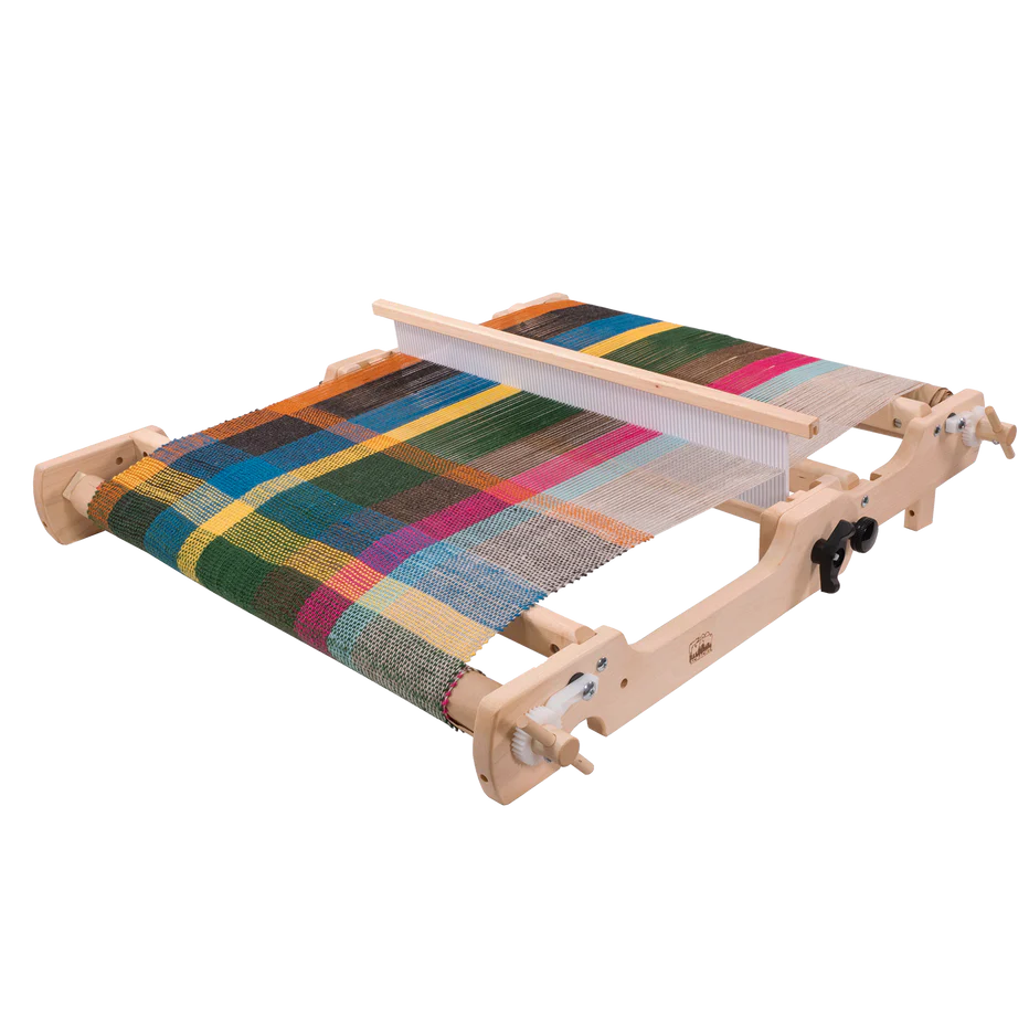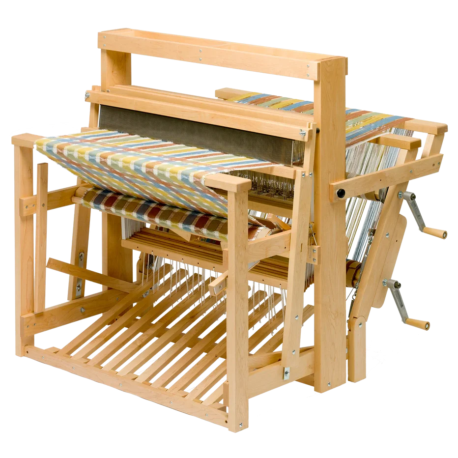 El tejido se combina con un diseño. Con anchos de tejido amplios (91 cm o 114 cm) y características prácticas como una bandeja para herramientas y una viga trasera plegable, el telar de piso estándar está diseñado para impulsar la creatividad.