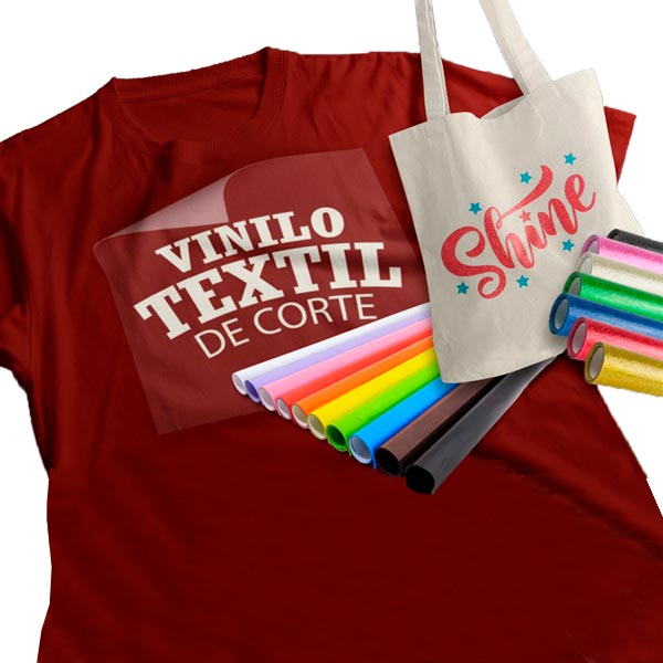 El vinilo textil es un material plástico termoadhesivo de cualquier color, que después de recortar y/o imprimir, transferimos a un tejido sin importar la composición de la prenda. En general se trata de una lámina de poliuretano (PU) o PVC (cloruro de polivinilo) que incluye un transportador.