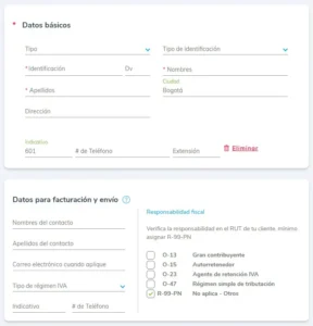 Por favor comparta con nosotros los siguientes datos, para su creación en nuestro sistema, en su defecto por favor enviar: